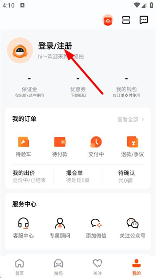 2、在個(gè)人頁(yè)面,點(diǎn)擊登錄/注冊(cè),進(jìn)入登錄頁(yè)面。