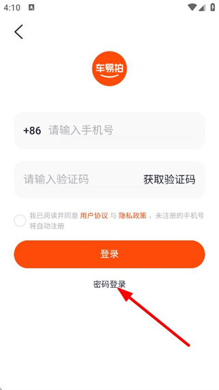 3、在登錄頁(yè)面,點(diǎn)擊密碼登錄,切換到密碼登錄方式。