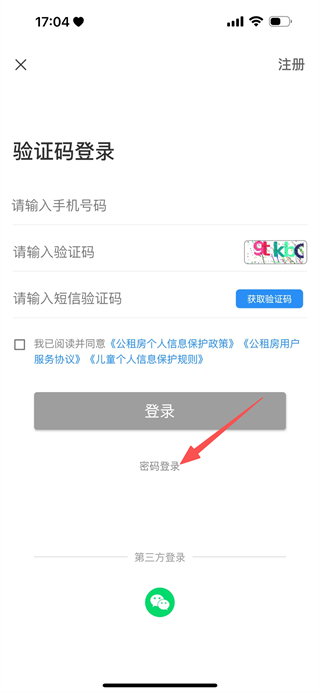 3、在登錄頁(yè)面,點(diǎn)擊密碼登錄,切換到密碼登錄頁(yè)面。