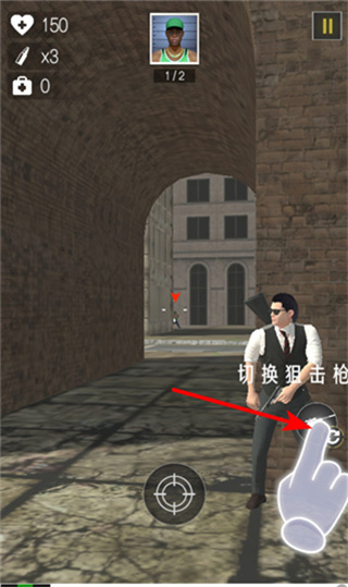 4、點擊切換按鈕更換狙擊槍,武器切換是應(yīng)對不同戰(zhàn)況的重要操作,切換后可利用狙擊槍的遠距離優(yōu)勢,打擊遠處敵人。