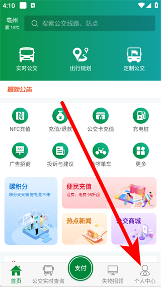 1、點(diǎn)擊亳州公交,點(diǎn)擊底部個(gè)人中心按鈕。