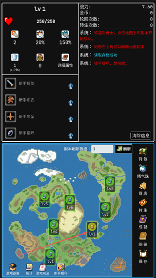 1、點擊地圖上的綠色區(qū)域如Lv1、Lv2區(qū)域,進(jìn)入對應(yīng)等級的戰(zhàn)斗場景,自動與怪物戰(zhàn)斗。