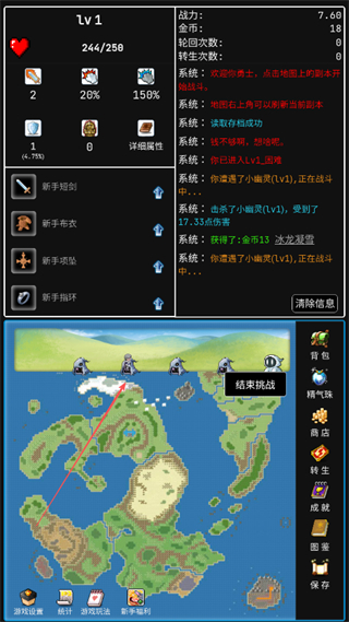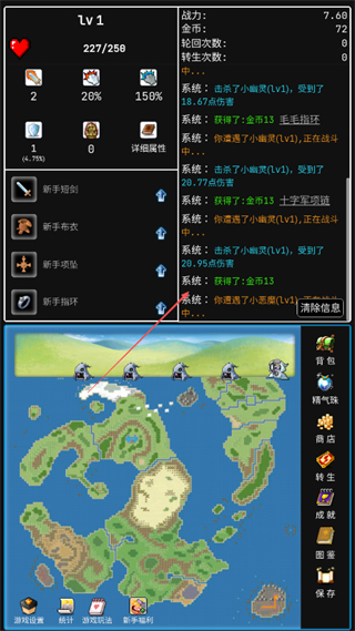 2、戰(zhàn)斗中擊敗怪物如小幽靈Lv1、小惡魔Lv1,可獲得金幣和裝備如冰龍頭盔、毛毛指環(huán)。