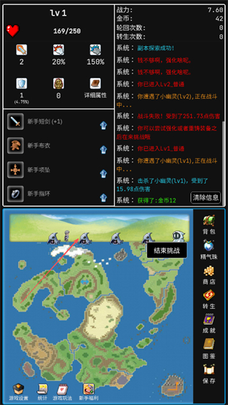 3、在戰(zhàn)斗中擊敗怪物如小幽靈Lv1、小魔鬼Lv1,獲取裝備如無段輕甲、弒盜太刀提升戰(zhàn)力。