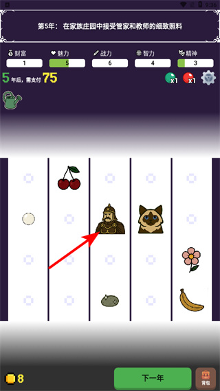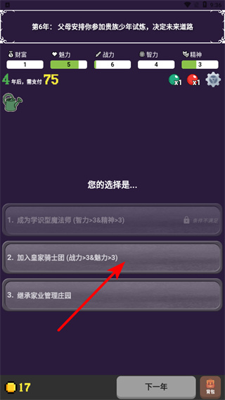 3、根據(jù)屬性選擇發(fā)展方向,方向選擇是塑造角色的關(guān)鍵環(huán)節(jié),選擇后可提升對應(yīng)屬性,解鎖技能和劇情,明確路線。