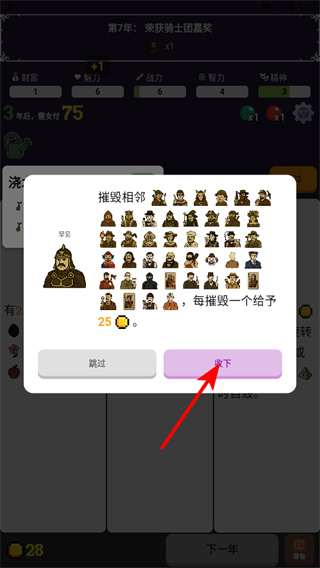 4、點擊收下按鈕領(lǐng)取獎勵,獎勵領(lǐng)取是強化戰(zhàn)力的重要操作,領(lǐng)取后可獲得金幣和屬性加成,增強后續(xù)關(guān)卡競爭力。