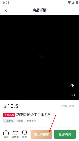 4、在商品詳情頁(yè)面,點(diǎn)擊加入購(gòu)物車(chē)按鈕,可將商品加入購(gòu)物車(chē)。