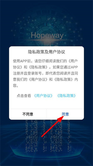 1、在用戶協(xié)議彈窗中,點(diǎn)擊同意,進(jìn)入登錄頁(yè)面。