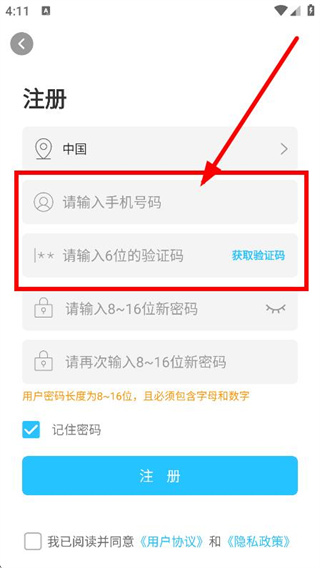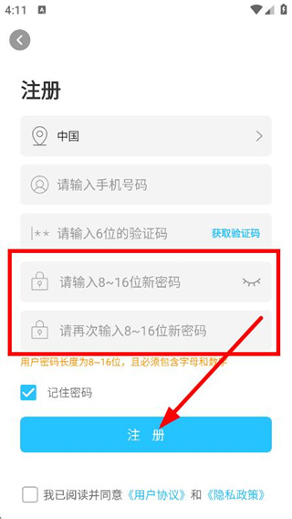 4、隨后設(shè)置密碼并再次確認(rèn)后點(diǎn)擊注冊(cè),完成注冊(cè)操作。