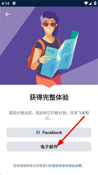3、在登錄方式選擇頁面,點(diǎn)擊電子郵件,進(jìn)入電子郵件輸入頁面。