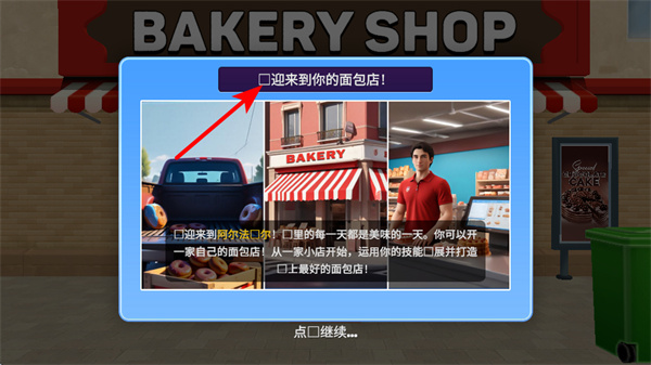 2、點(diǎn)擊面包店介紹界面的繼續(xù)按鈕,界面操作是進(jìn)入經(jīng)營(yíng)的核心步驟,操作后可正式開(kāi)啟面包店的經(jīng)營(yíng)生涯,售賣(mài)面包甜點(diǎn)。