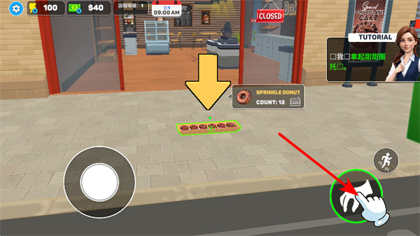 3、點(diǎn)擊拾取按鈕收集面包甜點(diǎn),甜點(diǎn)收集是開(kāi)展經(jīng)營(yíng)的關(guān)鍵環(huán)節(jié),收集后可將面包甜點(diǎn)放置到店內(nèi)售賣(mài),積累經(jīng)營(yíng)收益。