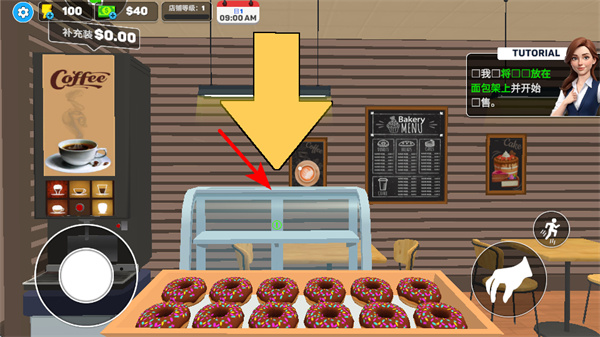 4、點(diǎn)擊面包展示柜放置甜點(diǎn),甜點(diǎn)放置是優(yōu)化售賣(mài)的重要操作,放置后可將面包甜點(diǎn)陳列展示,吸引顧客購(gòu)買(mǎi),提升營(yíng)收。