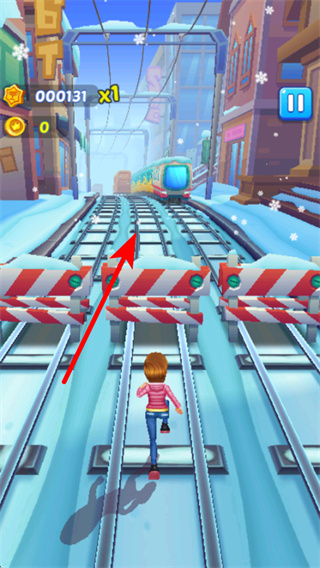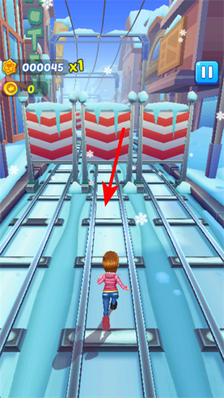 1、在游戲中,沿著軌道方向奔跑前進,方向把控是跑酷的關(guān)鍵操作,穩(wěn)定移動,避免因偏離軌道導(dǎo)致游戲失敗。