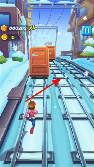 2、注意躲避前方的火車障礙,障礙躲避是生存的核心步驟,躲避后可避免被火車撞擊,持續(xù)在跑酷場景中前進。