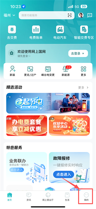 1、打開電力服務(wù)類APP,點擊底部我的選項,進入個人中心頁面。