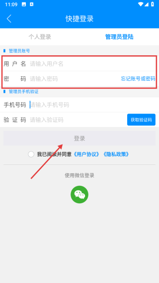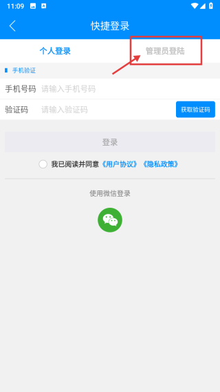 3、在快捷登錄界面,點(diǎn)擊管理員登陸選項(xiàng),切換至管理員登錄頁(yè)面。