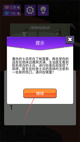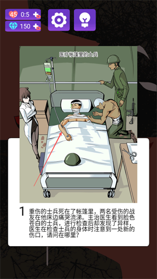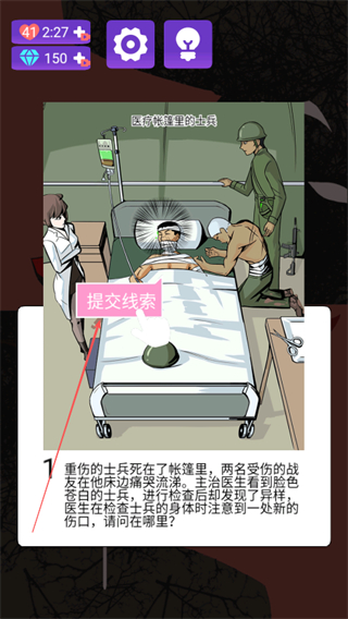 1、閱讀提示內(nèi)容,了解案件背景,明確需要尋找的線索如士兵的新傷口。