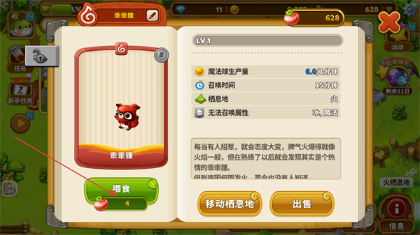 3、召喚成功后,點(diǎn)擊安置在棲息地可以選擇乖乖貍的安置地火山區(qū)域。