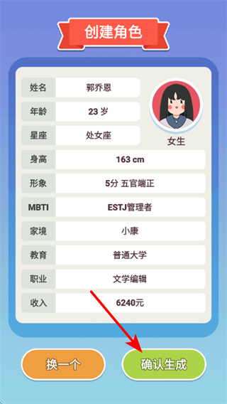 1、開啟游戲后,創(chuàng)建角色,角色創(chuàng)建是開啟戀愛模擬的關(guān)鍵操作,創(chuàng)建后可定制角色的各項屬性,開啟戀愛匹配相處之旅。