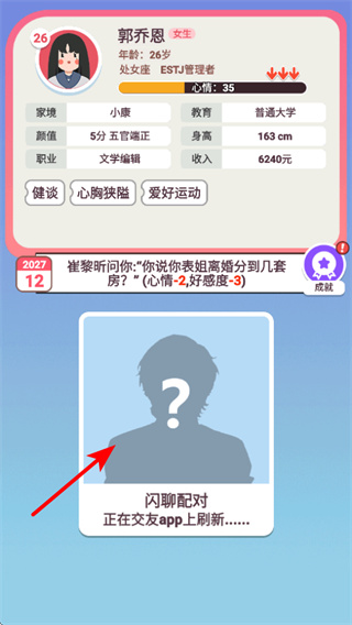 支持挑選性別、隨機(jī)生成形象,還能選擇三個(gè)標(biāo)簽定義性格,通過個(gè)性化設(shè)置打造專屬角色,讓相親之旅更貼合個(gè)人期待。