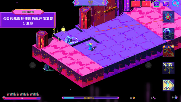 2、點(diǎn)擊藥瓶圖標(biāo)使用藥瓶,恢復(fù)部分生命值,保證持續(xù)戰(zhàn)斗。