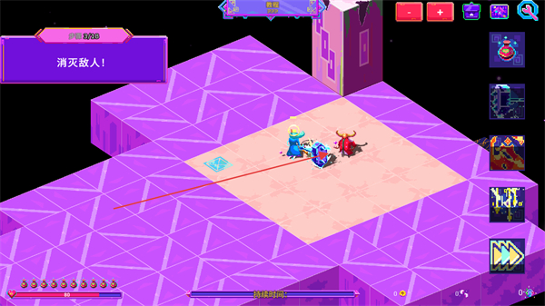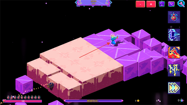 1、操控角色在霓虹風(fēng)格的方塊地圖中移動(dòng),探索不同區(qū)域,尋找敵人和資源。