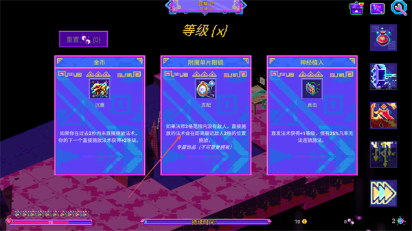 4、升級時選擇“附魔單片眼鏡”等技能,提升攻擊效果,助力戰(zhàn)斗和探索。