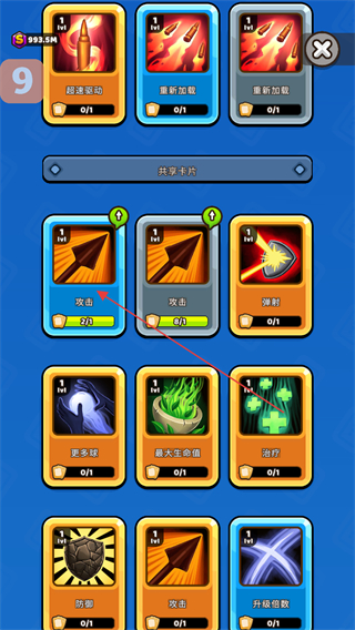 4、對(duì)攻擊類卡牌進(jìn)行升級(jí),提升攻擊屬性,增強(qiáng)英雄在戰(zhàn)斗中的輸出能力。