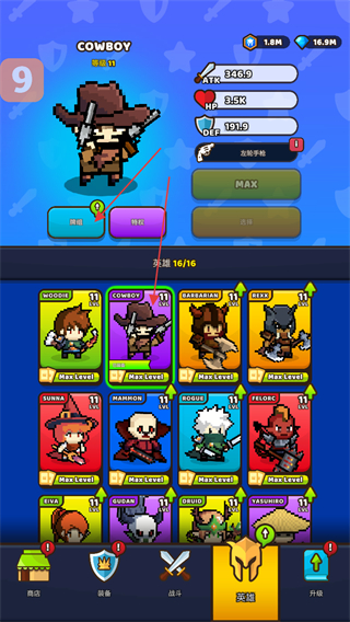 擁有多樣英雄可供收集,每個(gè)英雄都有獨(dú)特造型與屬性,如牛仔、野蠻人等風(fēng)格各異。玩家可自由搭配英雄陣容,滿足對(duì)英雄養(yǎng)成與陣容搭配的探索欲。