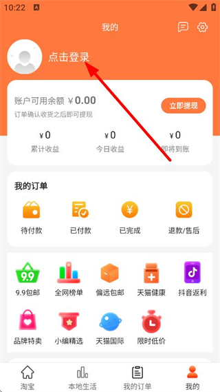 2、在個(gè)人頁(yè)面,點(diǎn)擊點(diǎn)擊登錄,進(jìn)入登錄方式選擇頁(yè)面。