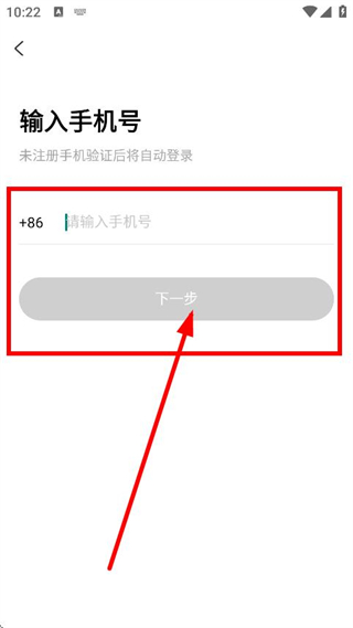 5、在手機(jī)號(hào)輸入頁(yè)面,輸入手機(jī)號(hào)后點(diǎn)擊下一步,進(jìn)入驗(yàn)證碼頁(yè)面。