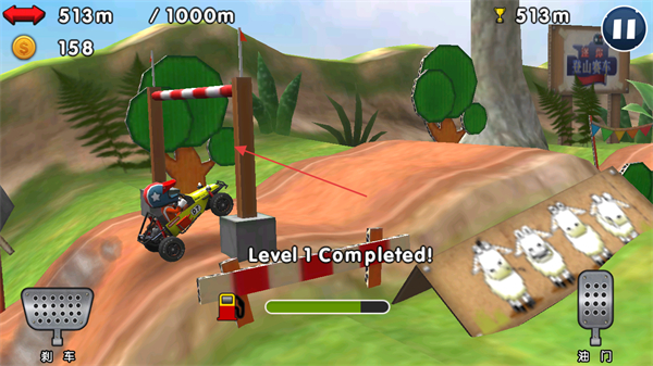 3、完成賽道賽程后,會顯示Level1Completed!,順利通關(guān)。