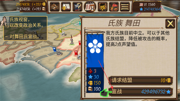 3、在氏族視窗中,可對(duì)其他氏族宣戰(zhàn),如對(duì)舞田氏宣戰(zhàn),發(fā)起軍事沖突。