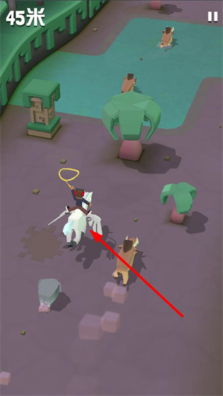 1、點(diǎn)擊開(kāi)始游戲進(jìn)入跑酷場(chǎng)景,通過(guò)滑動(dòng)屏幕操控牛仔移動(dòng)方向,在動(dòng)物群中選擇目標(biāo)騎乘,騎乘后動(dòng)物會(huì)自動(dòng)奔跑。