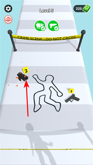 4、在犯罪現(xiàn)場關卡,點擊標有數(shù)字的證物如黑色手套,可收集線索,這是偵破案件的關鍵操作。
