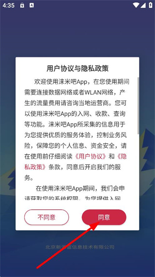 1、在用戶協(xié)議與隱私政策彈窗中,點(diǎn)擊同意,進(jìn)入頁面。