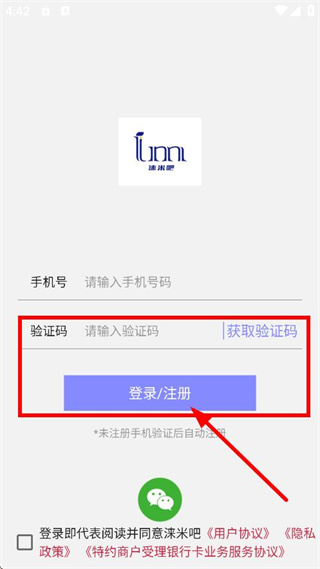 3、輸入收到的驗(yàn)證碼后,點(diǎn)擊登錄/注冊(cè),完成登錄操作。