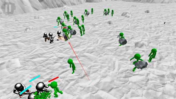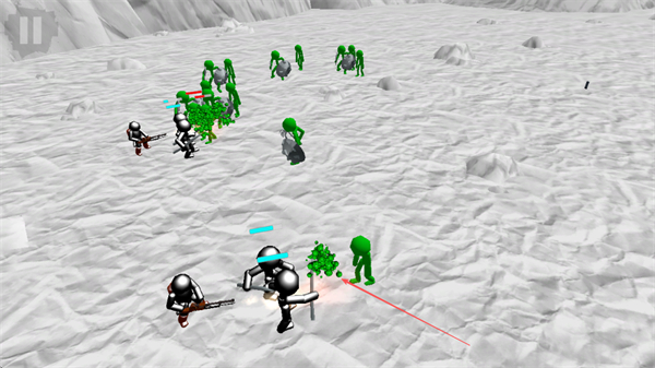 1、指揮火柴人士兵與綠色僵尸及持石僵尸戰(zhàn)斗,利用火力優(yōu)勢壓制敵人。