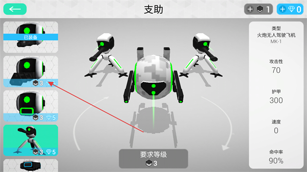 1、在軍械庫(kù)中可以更換支助機(jī)器人的類型,大部分支助機(jī)器人有等級(jí)限制,需要達(dá)到一定等級(jí)并花費(fèi)鉆石進(jìn)行購(gòu)買。