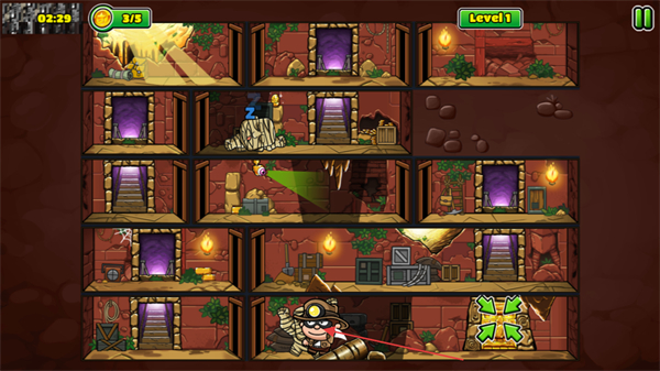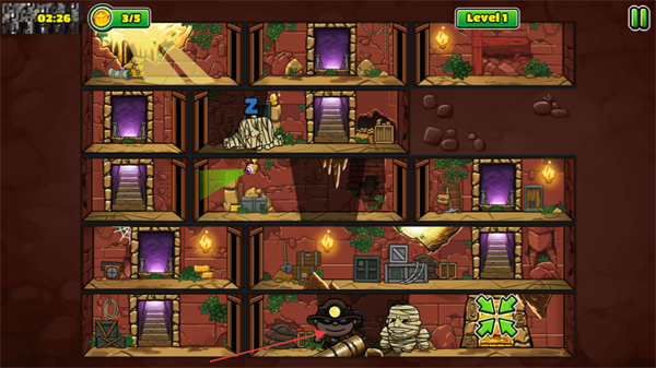 4、控制角色解開右下角的逃生通道進行逃離,根據(jù)通關(guān)用時和金幣獲取數(shù)量進行星級評定。