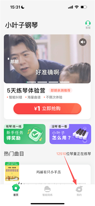 1、在小葉子鋼琴首頁,點擊右下角我的選項,進入個人頁面。