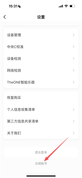 3、在設(shè)置頁面,點擊注銷賬號選項,進入注銷賬號確認頁面。