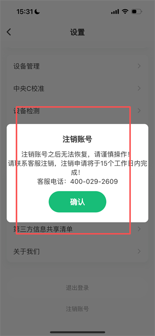 4、在注銷賬號確認頁面,按照提示聯(lián)系客服,即可完成注銷。