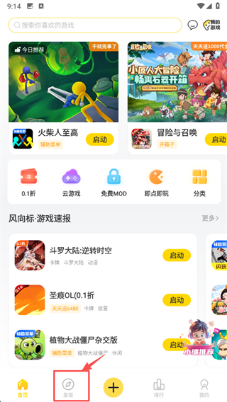 1、打開游戲類APP,點(diǎn)擊底部發(fā)現(xiàn)選項(xiàng),進(jìn)入發(fā)現(xiàn)頁面。