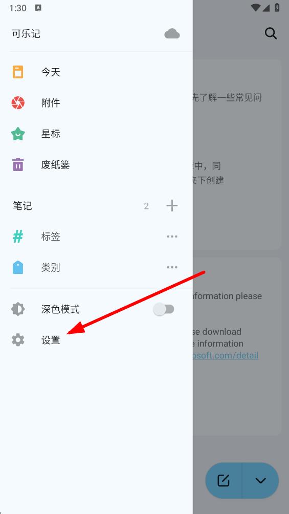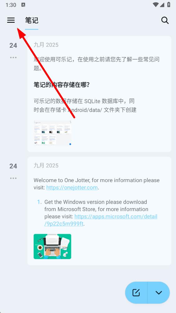 1、打開(kāi)可樂(lè)記app,點(diǎn)擊左上角的菜單圖標(biāo),展開(kāi)側(cè)邊欄菜單。
