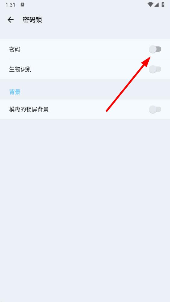 4、進(jìn)入密碼鎖頁(yè)面后,點(diǎn)擊密碼后的開(kāi)關(guān)按鈕。