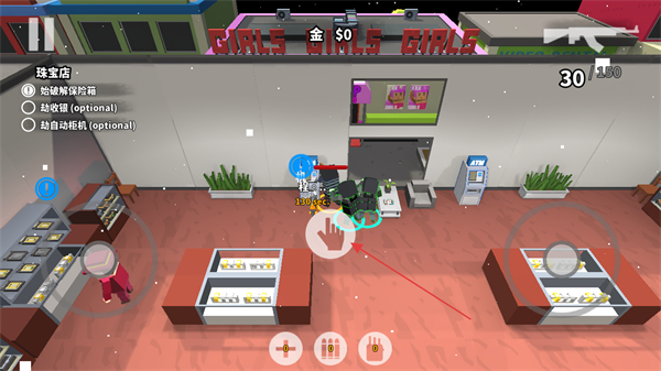 2、在珠寶店內(nèi),點擊互動按鈕,破解保險箱,同時注意店內(nèi)的安保人員。