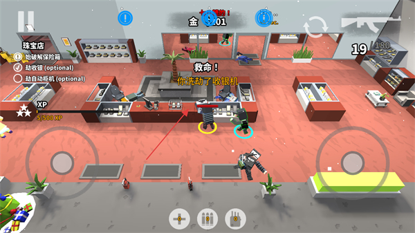 4、成功破解保險箱或觸動收銀機后,獲取金幣和經(jīng)驗獎勵,提升角色等級,繼續(xù)挑戰(zhàn)其他搶劫目標。