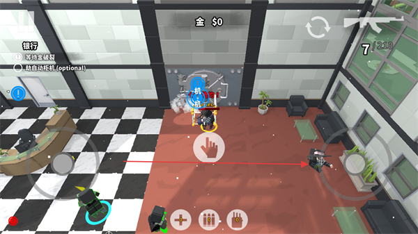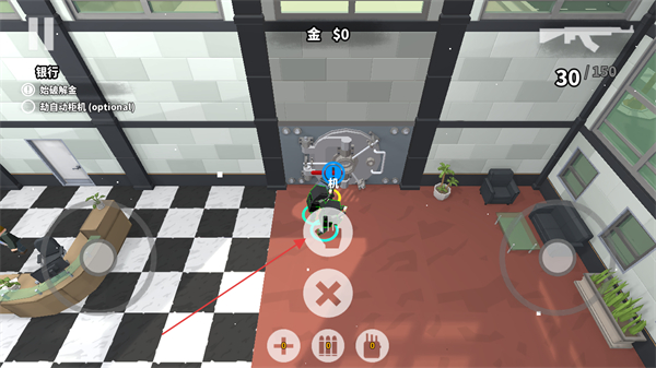 1、進入銀行,點擊互動按鈕開始破解金庫,同時注意周圍的安保人員。
